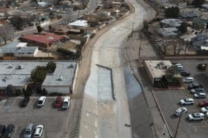 In December 2025, Compass repaired two sections of the Embudito channel: at Menaul Boulevard NE and at Moon Street NE. At both locations, existing concrete was removed and new concrete and rebar installed.